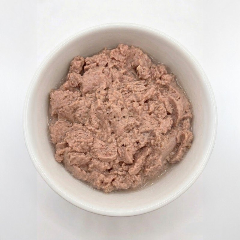 No es una mousse sin más: tiene textura de paté con trocitos, lo que la hace más interesante para el perro y mejora la aceptación.
