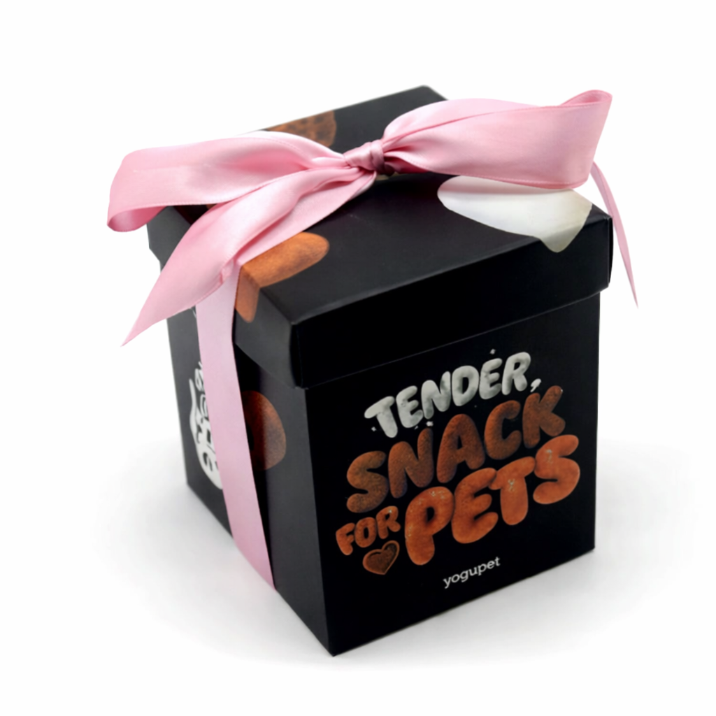 Este producto es puro factor “qué mono es” 😍. Una bolsita presentada dentro de una cajita negra elegante, decorada con un lazo rosa, pensada tanto para regalar a otros como para mimar al perro de casa 🎀✨.
