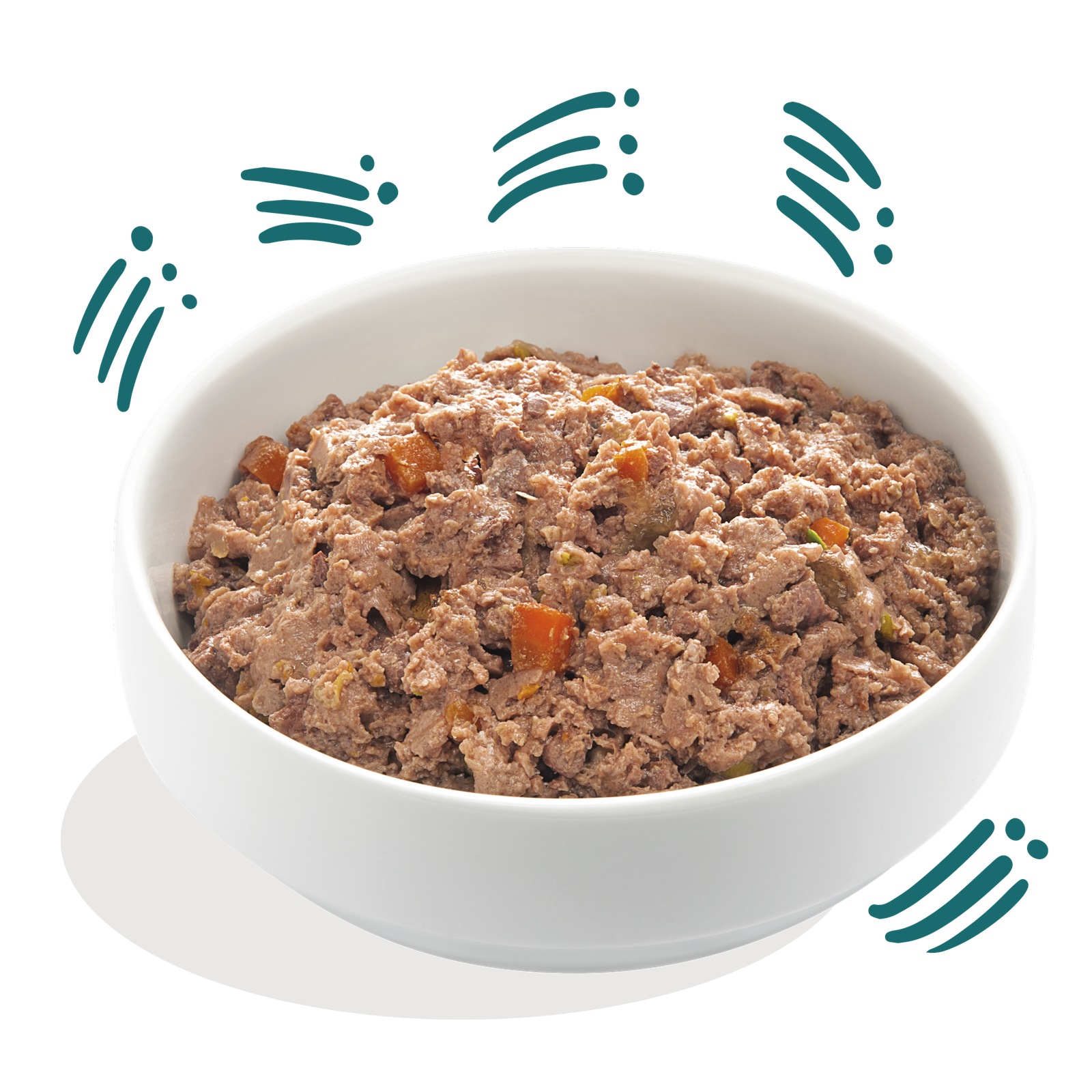 Una receta húmeda con pescado como protagonista, con textura suave tipo paté y un sabor más intenso, ideal para perros que necesitan algo diferente o más atractivo en su dieta.
