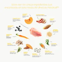 El air-dried es un proceso de secado al aire a baja temperatura por el que pasan ingredientes frescos como carne, pescado, frutas, verduras y superalimentos. Estos ingredientes se pican y mezclan en fresco y posteriormente se elaboran en nuestros hornos mediante un secado lento y controlado.