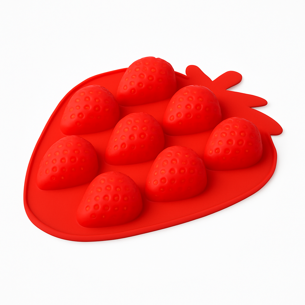 🍓 Diseño atractivo y funcional – con cavidades con forma de fresa y textura en relieve que facilita el desmolde y aporta un acabado encantador a cada snack.