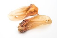 Snack 100% natural Vacuno (SIN PELO). Orejas más grandes que la gran mayoría de orejas que se pueden encontrar en el mercado actual, ya que conservan la parte del oído que contiene una proporción abundante de carne, prácticamente no presentan grasa y presentan más viscosidad.