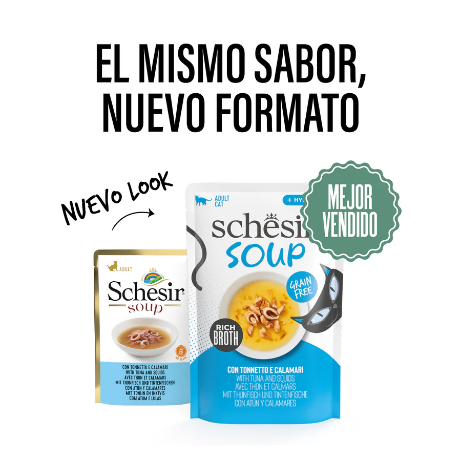 Schesir Atún y Calamar en Sopa para Gatos – Alimento complementario natural en formato sopa