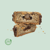 Un bizcochito de toda la vida relleno con una bomba de ternera triturada por nosotros y de consumo humano, además de llevar aceite de oliva virgen extra y algarroba en las galletas de vaquita que la rodean, de ahí su color marrón. 🐮